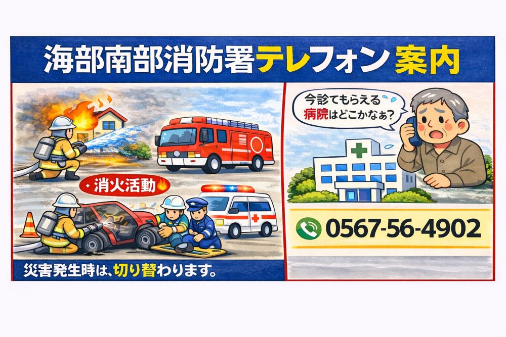 | 海部南部消防本部 テレフォンサービス | 災害情報・病院案内 | 0567-56-4902 | ||